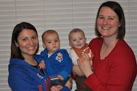We went and saw Dr. Yu on the 17th and he said she is looking great! We can start baby food 3 times a day, breakfast, lunch and dinner right away. He said to start with veggies and give her one veggie for 5 days and build on that. This way we will know what she is allergic to. She has a cough, stuffy nose thing going on and he thinks its allergies. So we are giving her 1/2 tsp. of Zyrtec at night to see if clears things up. Oh, I almost forgot... she weighs 13 1/2 lb.s and is 25 3/4 inches long. Dr. Yu said she is following her curve nicley! He also asked me if she was sleeping through the night and I said sometimes, but most of the time she wakes up once a night to nurse. He smiled and said "She is just snacking. She can sleep through the night." He went on to say to let her cry for 20 mins. when she wakes up in the middle of the night. I just kinda chuckled at him and told him I wasn't ready to do that. He laughed at me and said "Well when you are ready to get some more sleep then let her cry for 20 mins". It was a great 6 month check up minus the shots.